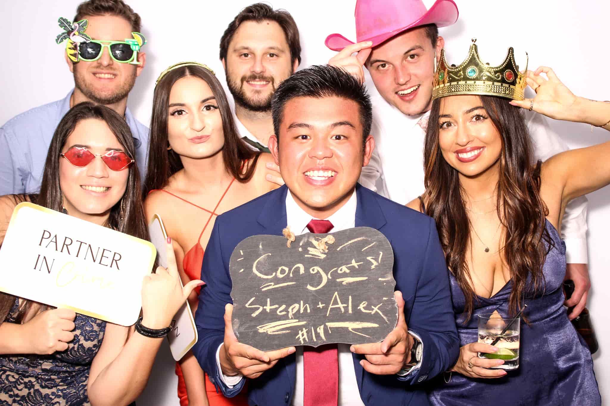The fastest way to turn a shy guest into the life of the party. Our props are the great equalizer — one ridiculous hat and suddenly everyone's competing for camera time. Warning: prop stations have been known to cause uncontrollable laughter and very long lines.